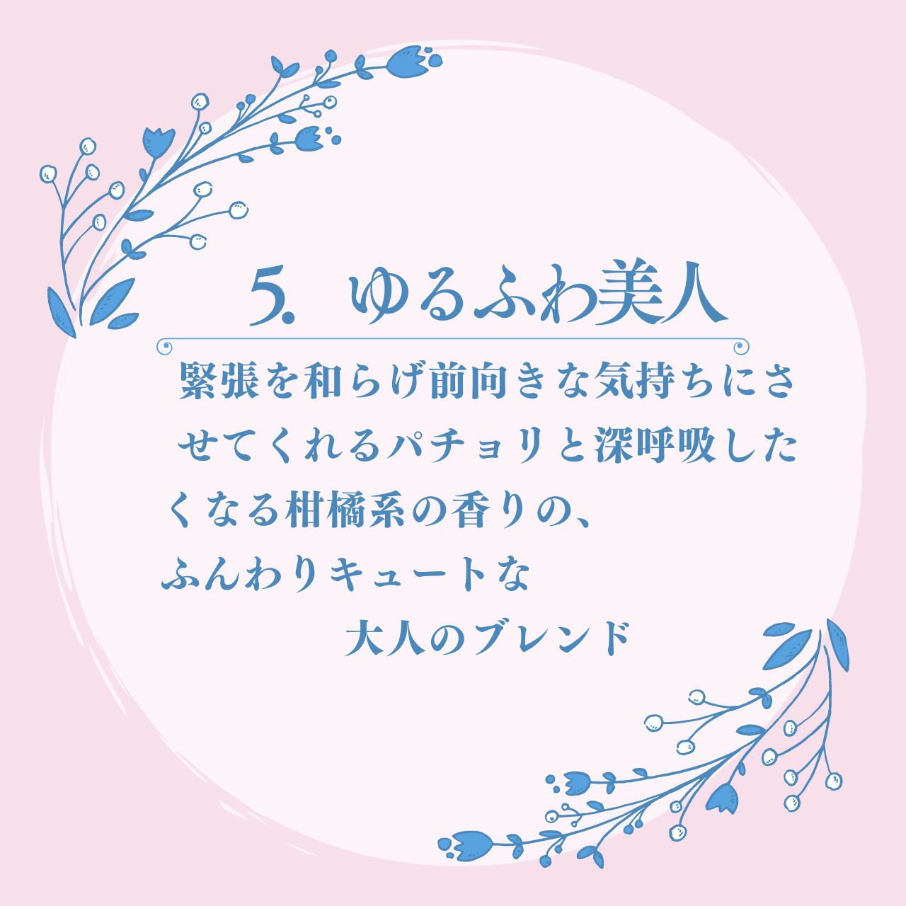 このアロマは、あなた自身の美しさを引き立てるためのパートナーとなります。ゆるふわ美人とともに、毎日をより素敵に過ごしてみませんか?