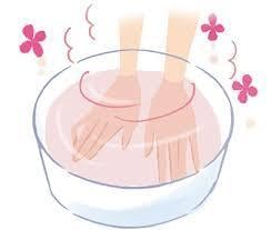 ・洗面器にお水を加えて手の沐浴もおすすめです。